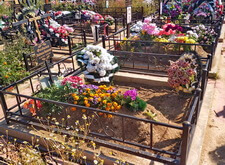 Когда памятник был изготовлен, идём на место захоронения. На данный момент на могиле находится лишь холмик, на котором растут цветы.